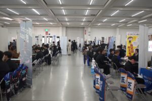 12月16日、広島県立広島工業高等学校の1・2年生を対象とした企業ガイダンスに参加しました。会場の広島産業会館には、総勢107社の企業が集まり、活気ある雰囲気の中で開催されました。