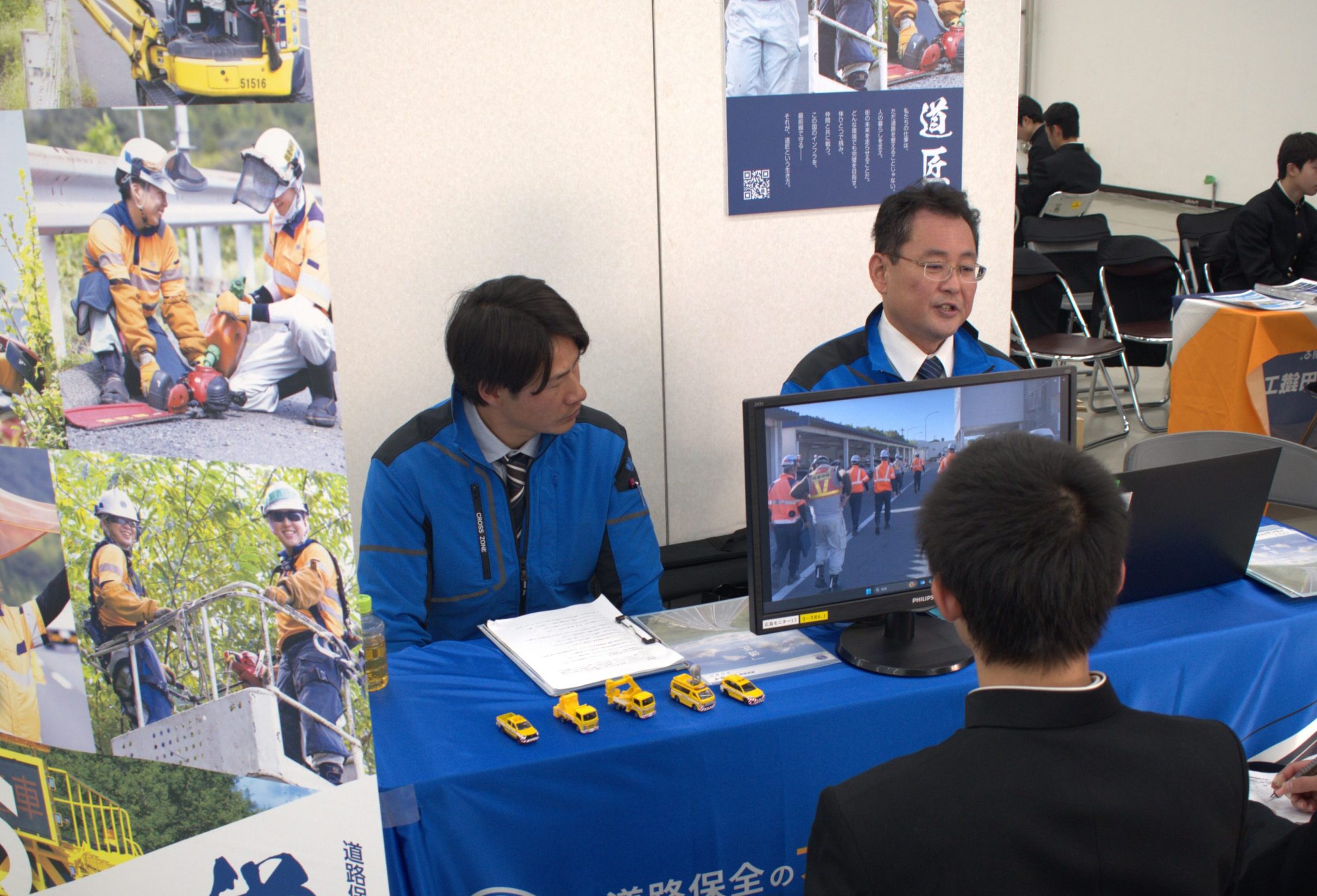 12月16日、広島県立広島工業高等学校の1・2年生を対象とした企業ガイダンスに参加しました。会場の広島産業会館には、総勢107社の企業が集まり、活気ある雰囲気の中で開催されました。